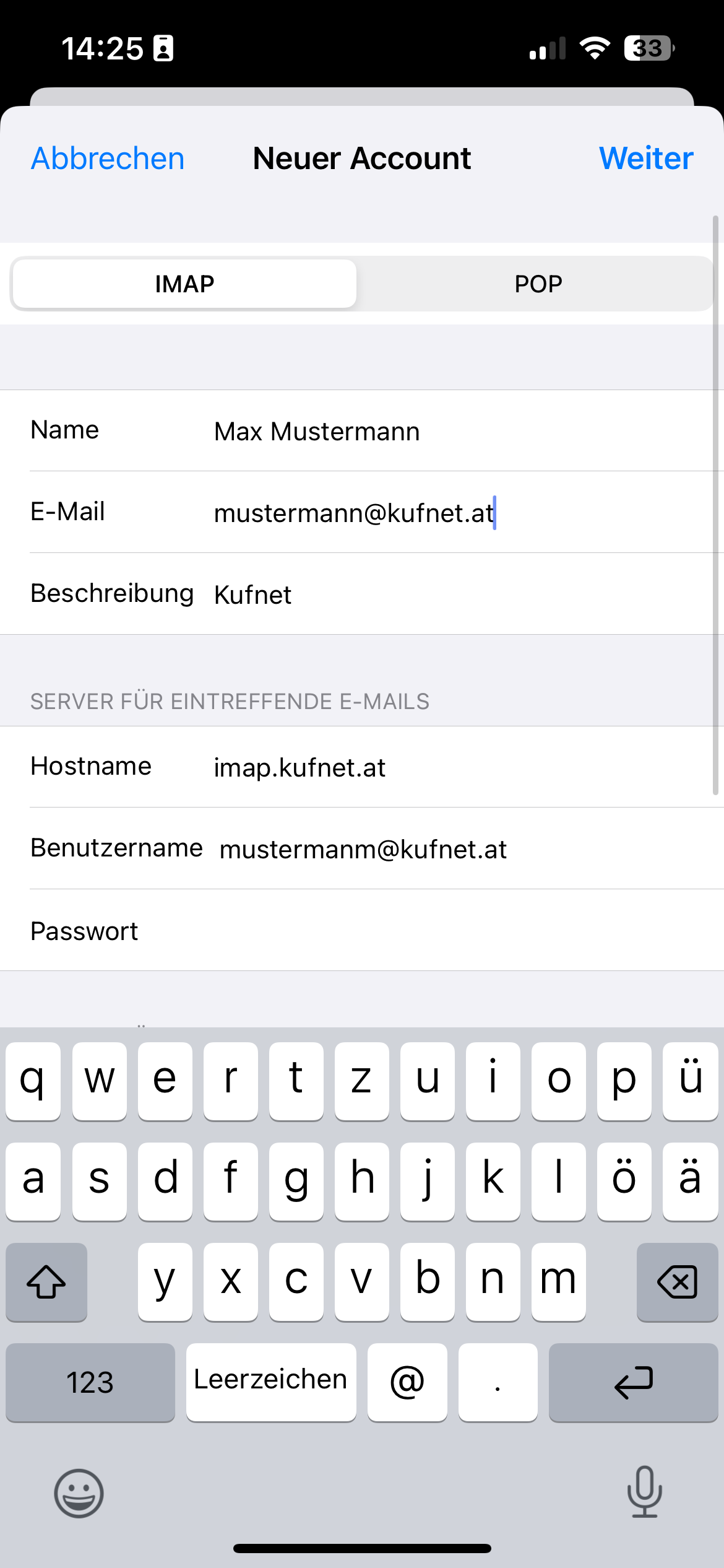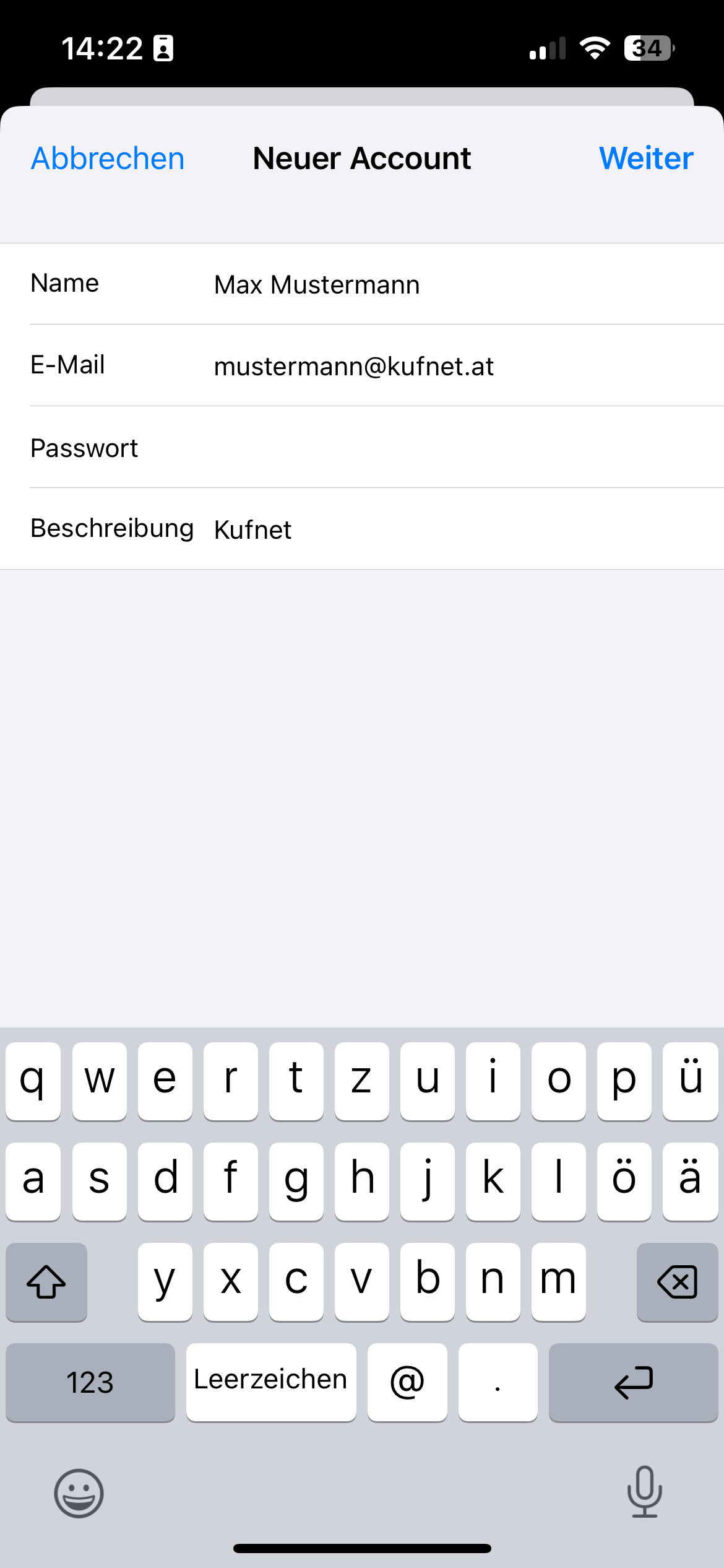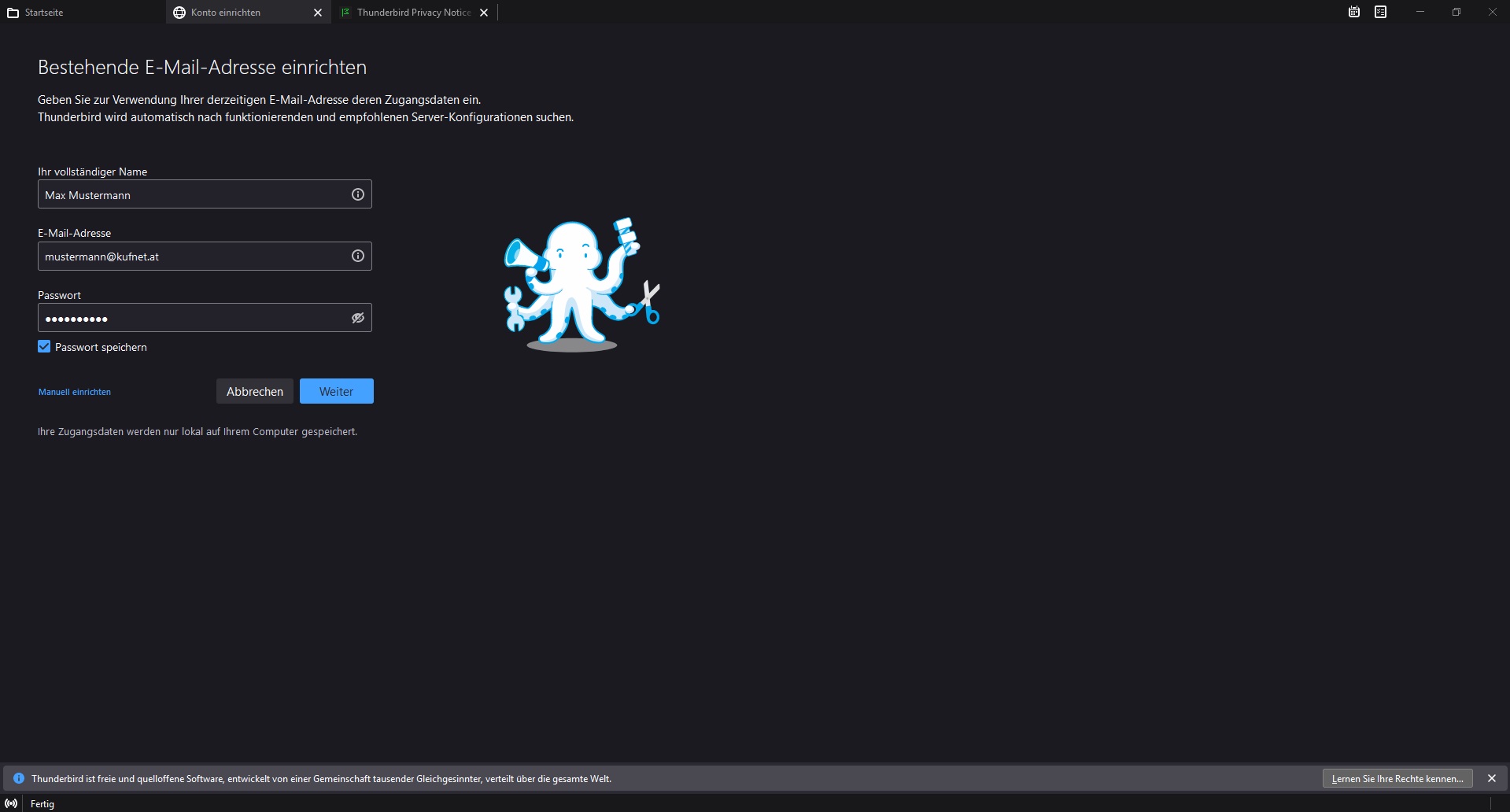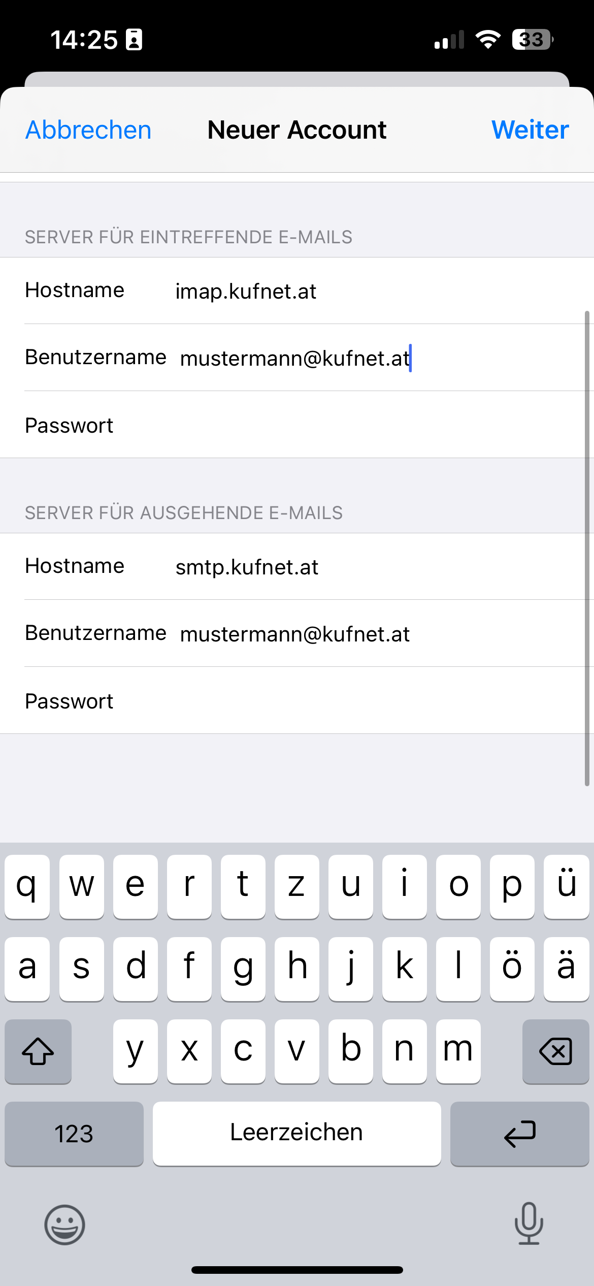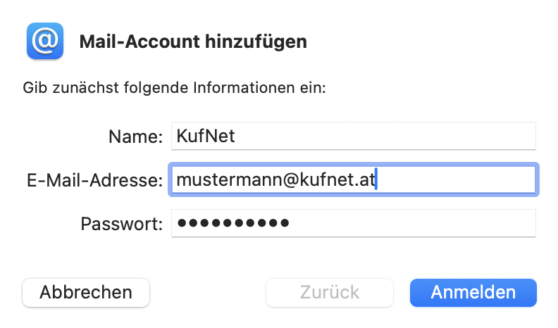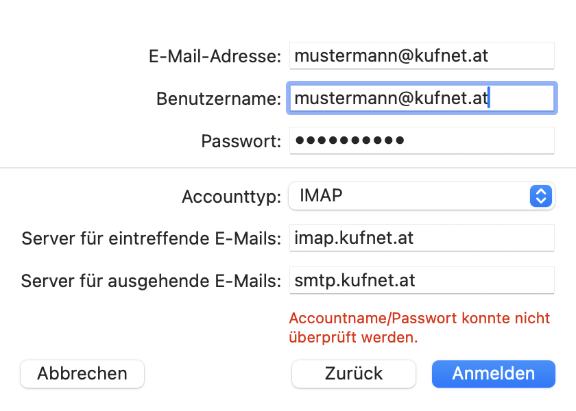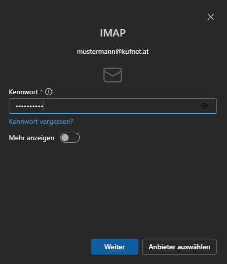 - Geben Sie Ihren Benutzernamen ein. Dies ist Ihre E-Mail-Adresse ohne @kufnet.at.