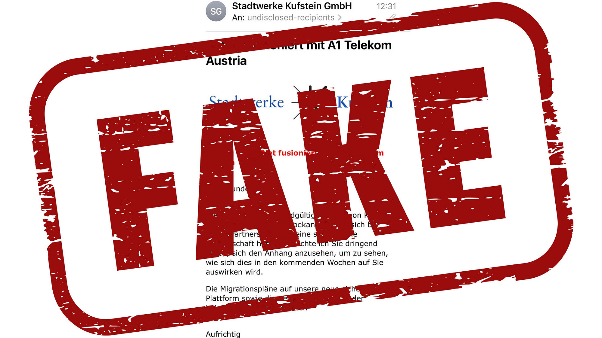 Eine gefälschte E-Mail zur Fusionierung von KufNet mit A1 Telekom Austria ist im Umlauf.